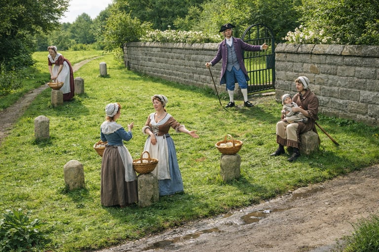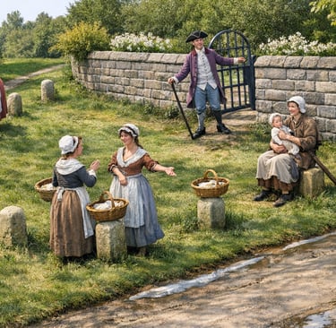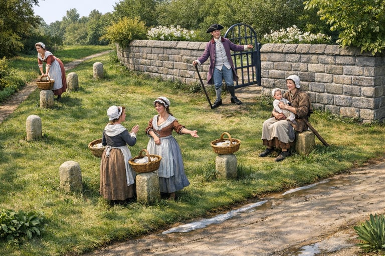 Could the stumps have been guards or guides for people, or perhaps ridden horses to enter and exit the property? A safety device? Or were they there to stop coaches parking close up to the entrance and thereby blocking use? The road junction could have been quite different in the past to what we see now. At some point the entrance(s) were blocked up and the stumps left out on their own. Could they have then been appropriated by our clever women of Woodhouse to sell their goods.