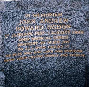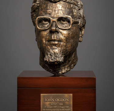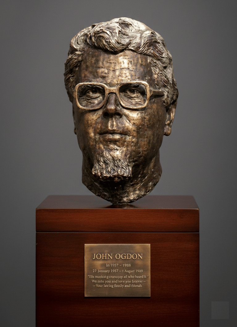 A bronze bust was created by sculptress Joy Bently was displayed in the Mansfield Palace Theatre in 2002 to mark what would have been John Ogdon’s 65th birthday.