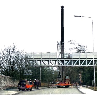 Overhead lines were installed to carry buckets of rubble from the colliery which then passed over Debdale Lane to the coal tip. Eventually the buckets were unable to cope with the amount and it was replaced by a 6ft wide gantry-style bridge with a 28ft span built across Debdale Lane which carried a rubble conveyor (sources & credits 14). That gantry was subsequently removed in the early 1980s.