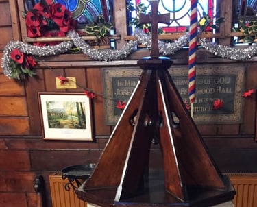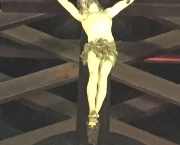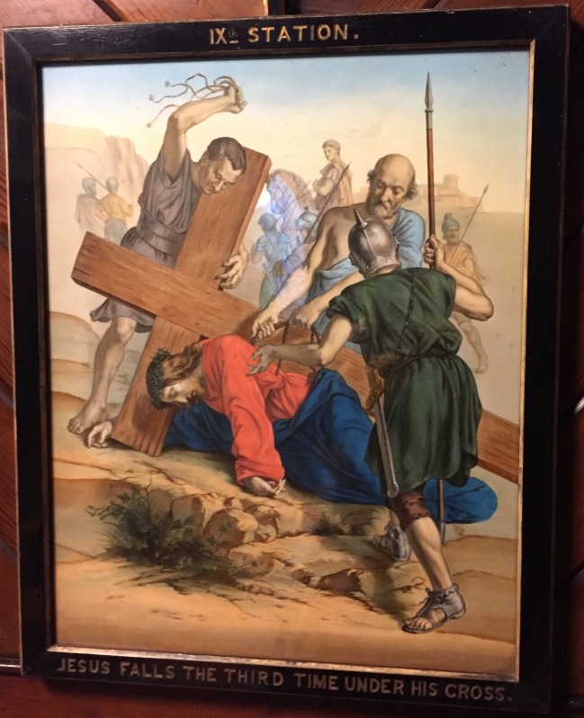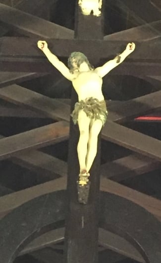 This image of Jesus Christ on the cross, takes centre stage on the wooden screen in front of the altar. There are 14 such pictures in a series around the church which illustrates the journey Christ took to his crucifixion.
