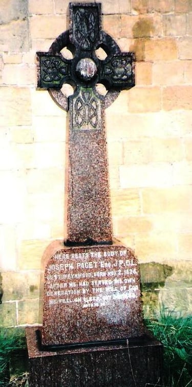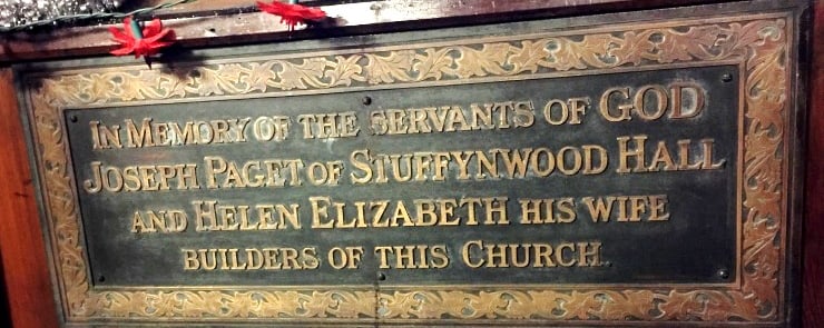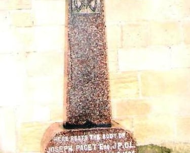 St Chad’s is without a churchyard of its own so when its founder Joseph Paget died on 21st October 1896 he was buried in the church yard at Shirebrook Parish Church. The grave stone is inscribed: ‘Here rests the body of Joseph Paget Esq. JP DL of Stuffynwood born Nov 2nd 1825.