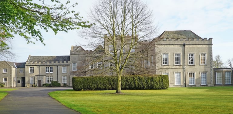It is a Grade II listed building of sprawling proportions and stands in lawned gardens on Priory Road.