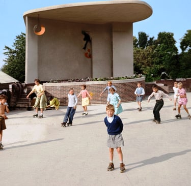 The concrete bandstand in the park, built in the Art Deco style, was erected about 1939. Its foundations were laid by Rouse’s, a local building firm. During the summer months the council would arrange Sunday band performances.