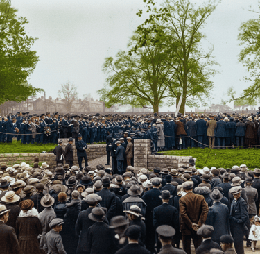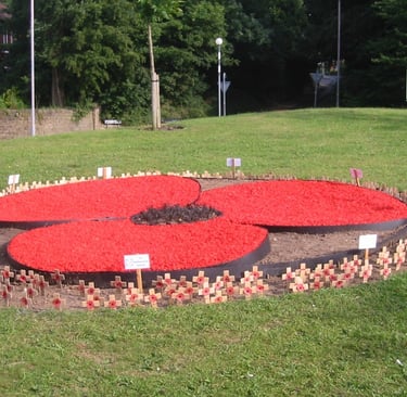 On 3 June 1923 a huge crowd gathered within the Park and on the surrounding roads and pavements. They had come to witness the unveiling of a war memorial erected to honour the fallen. Amongst them were 2,000 local school children, 500 relatives of the fallen, 4,000 representatives of local societies, the British Legion and several bands and choirs from local collieries and churches. The Memorial was draped in the Union Jack and a guard of honour was provided by four men of the Sherwood Rangers Yeomanry.