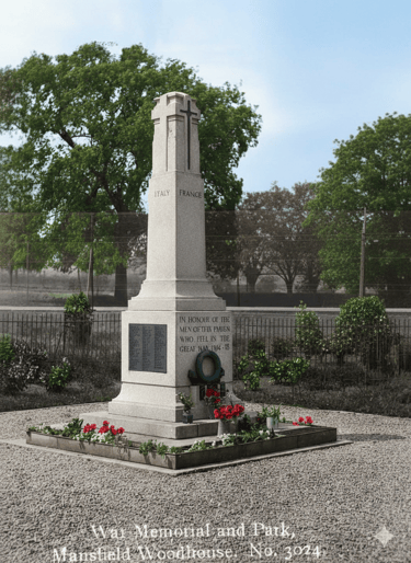 The first annual united Memorial Service in honour of the men who fell in the First World War was at Yeoman Hill Park, on Sunday 8 August 1920. The Mansfield Woodhouse branch of Discharged and Demobilised Sailors and Soldiers was in attendance. The service was presided over by William FrederickWarner Esq, chairman of the Urban District Council and the address was by the Rev A. Basil Brooker (chaplain to the branch), supported by the Rev J Lowndes, Rev S R Strongman of the Methodist Free Church and Mr Watson, chairman of the branch.