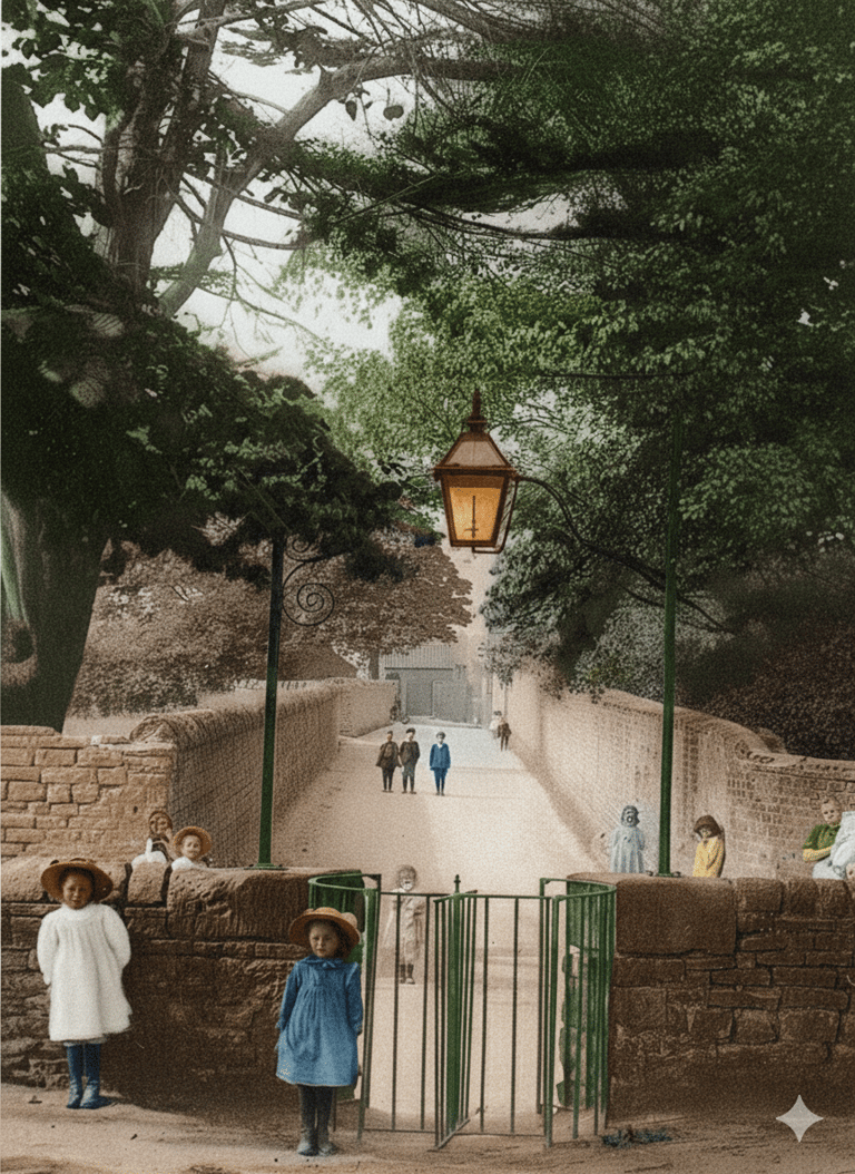 Ornate metal gates erected at the entrance to the Park were dedicated to the memory of local men who fought and died during the Second World War between 1939 and 1945. They were officially opened on 6 November 1949 by Councillor John Henry Brown, chairman of the Urban District Council and dedicated by the Vicar of St Edmund’s Church the Rev A G Barker who was chairman of the War Memorial Committee.